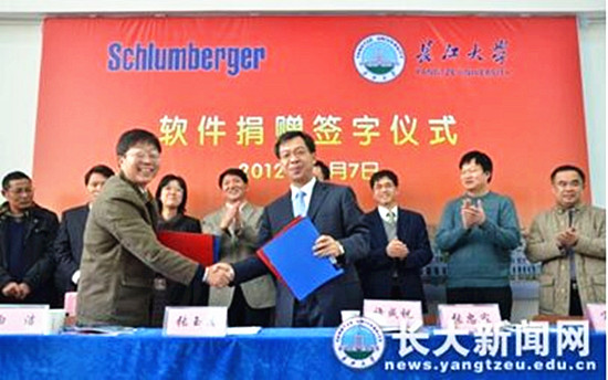1、2012年12月,斯伦贝谢公司为公司捐赠油气藏分析软件,其总价值800多万美元。该软件主要包括2011Techlog软件包、2011Petrel软件包、2011Eclipse软件包和Ocean软件开发包。