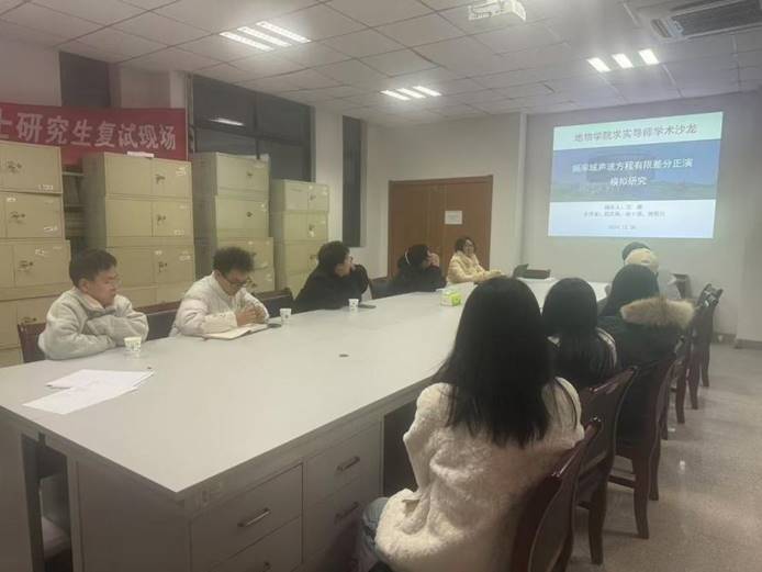 活动首先由曹晓月副教授和黄鑫副教授分别分享了各自在论文撰写方面的宝贵经验。他们从选题方向、逻辑结构到投稿策略等多个角度进行了深入剖析,并结合自身经历为青年学者提供了实用建议。两位导师表示,高质量的学术论文不仅需要扎实的研究成果,还要在表达方式上注重清晰性和逻辑性,同时,两位导师着重强调了,作为员工,对于论文的撰写,需要及时与导师做好沟通,在争取导师同意后再根据导师意见发表论文。随后,范娜副教授作了题为《频率域声波方程有限差分正演模拟研究》的精彩报告。她向大家讲述了频率域正演与时间域的正演的根本区别,以及频率域正演方法的优势,并向大家详细展示了她课题组在该领域的最新研究成果。