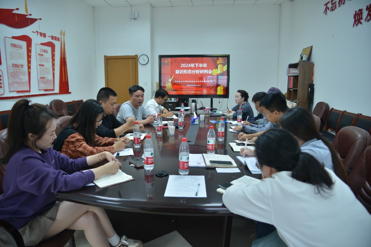 (通讯员 游菁)10月14日下午,分党委在石油科技大楼D111会议室召开2024年下半年意识形态分析研判会。分党委书记周俊、副书记焦简金及全体党支部书记、辅导员参加会议,会议由周俊同志主持。