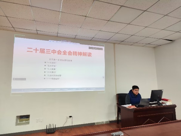 测井系教工党支部赵彬同志以“党的二十届三中全会精神解读”为主题讲授微党课。他全面解读了进一步全面深化改革的“一大目标”、“两大任务”、“三大面对”、“七大聚焦”、“六大原则”、“十四大系统部署”、“一个特别强调”。他强调要巩固拓展主题教育成果,深化党纪学习教育,维护党的团结统一,不断增强党的创造力、凝聚力、战斗力。