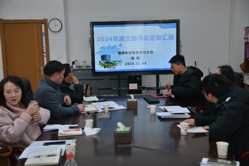 会上,测井信息工程系教工党支部书记许巍、地球物理勘探系教工党支部书记秦喜林、固体地球物理系教工党支部书记孙权、数据科学系教工党支部书记朱伟、本科生第一党支部书记董勤文、本科生第二党支部书记游菁、研究生第一党支部书记李蓓蕾和研究生第二党支部书记何忠万分别代表所在支部进行抓党建工作述职。各党支部书记围绕贯彻落实上级党组织部署要求情况、严格党的组织生活制度、推进党支部标准化规范化建设情况、对标“七个有力”,推动党建与业务工作、中心工作“双融双促”情况和加强党员队伍建设情况四个方面做了述职汇报。分党委委员结合各自分管工作,对各支部的述职报告逐一进行深入点评与指导。