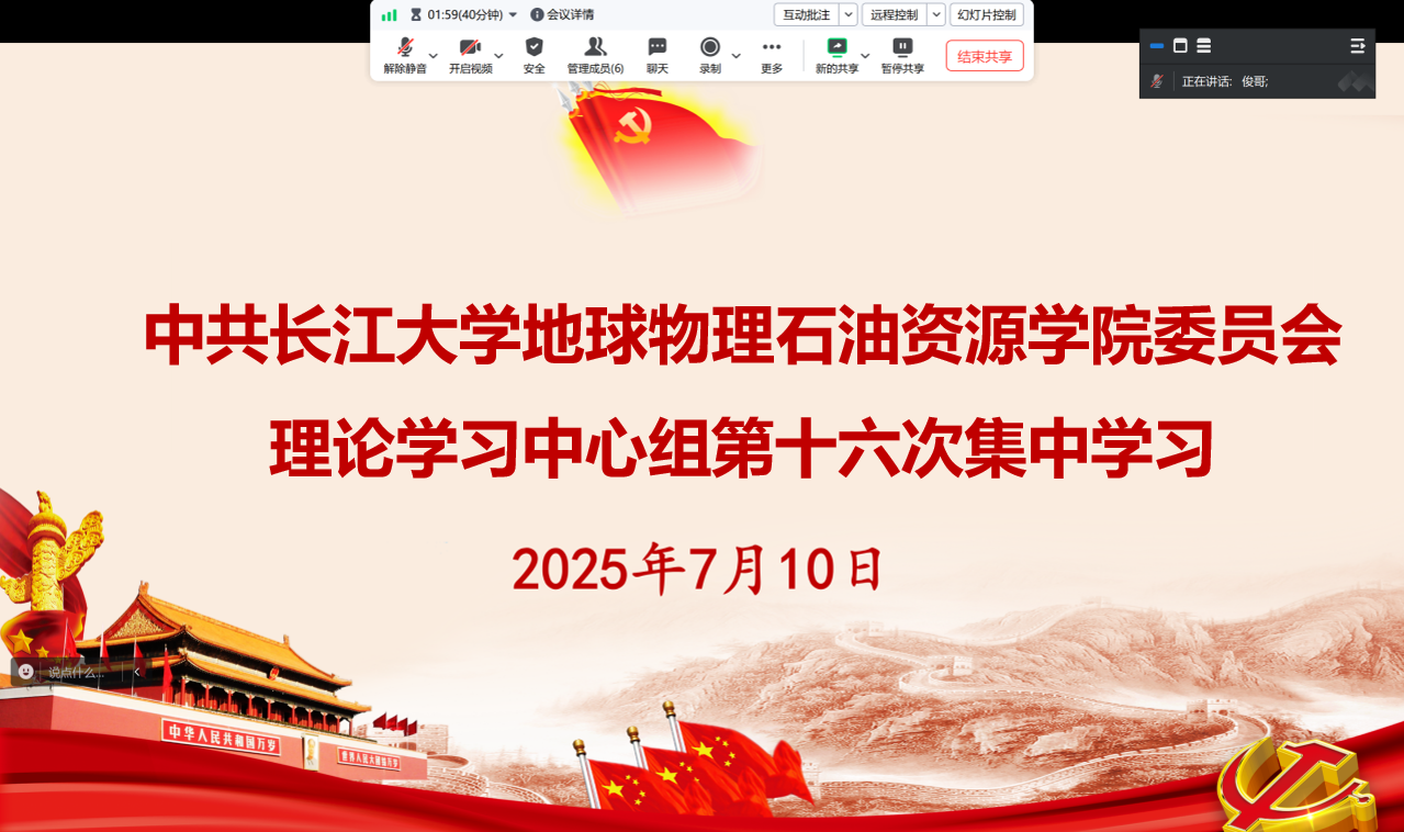 (通讯员 游菁)7月10日下午,公司党委中心组在线上组织开展了2025年第十六次集中学习和研讨,院党委书记周俊主持会议。