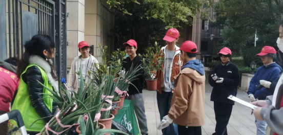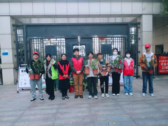 (图 5获得绿植盆栽的志愿者们与社区工作人员合影)