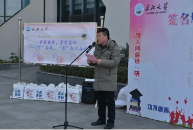 党委副书记焦简金勉励同学们牢记考场规则,遵守考试纪律,诚信考试,用自己的辛勤付出换得满意的答卷。