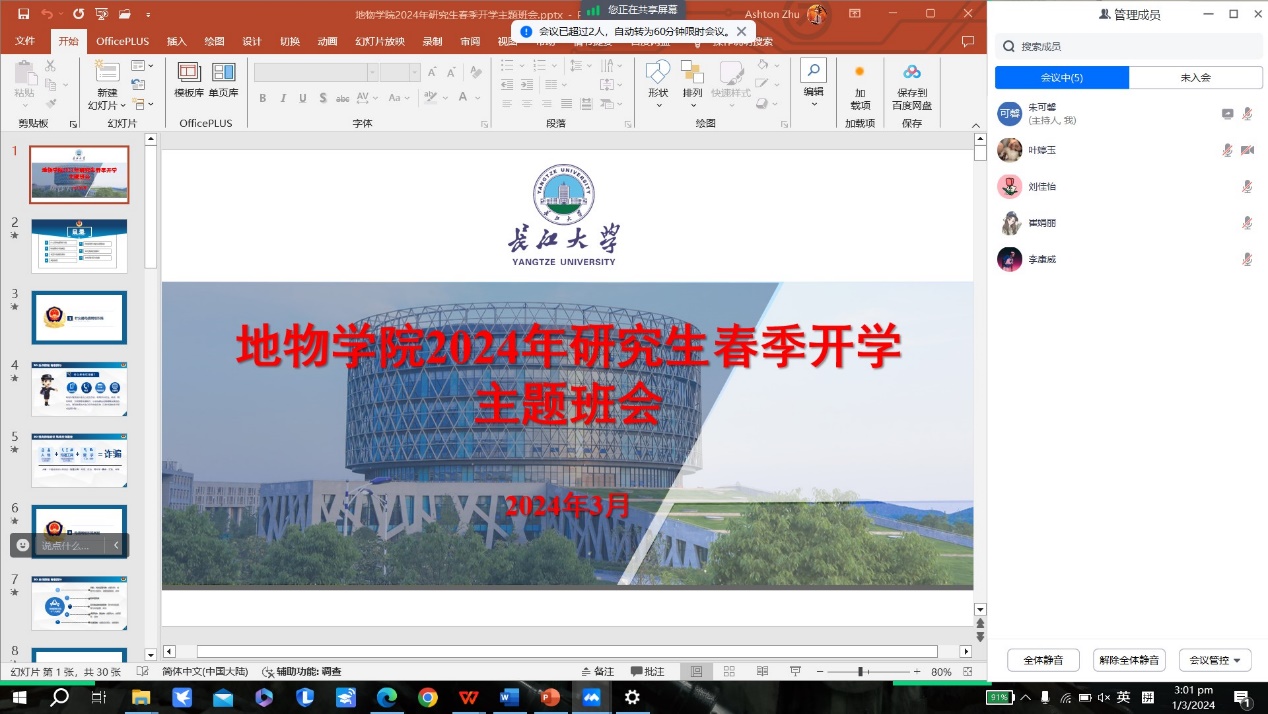 (通讯员 李蓓蕾)为进一步加强研究生思想政治教育,引导研究生启航新学期,逐梦新征程,2月29日至3月5日公司研究生各班级陆续开展了主题教育班会,内容共包括三部分:反诈宣传教育、“守望生命”安全教育、员工学业与就业规划。