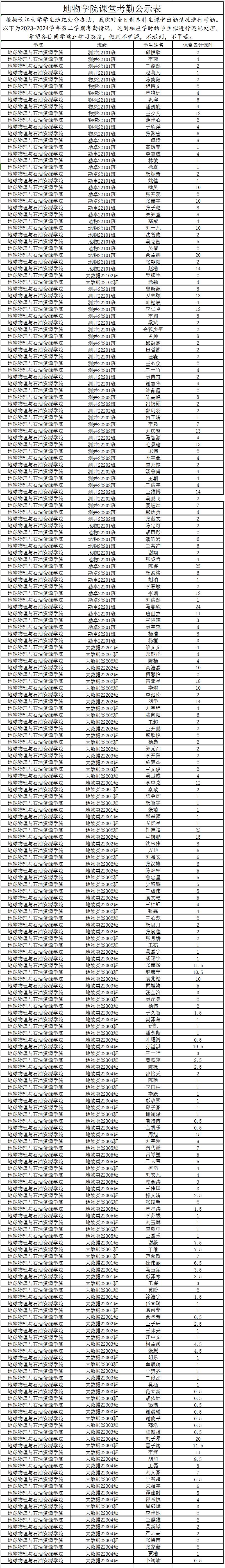 为加强公司学风建设,确保正常的上课秩序,在公司形成良好的院风、班风、学风,公司对全日制本科生课堂出勤情况进行考勤。现将公司2023-2024学年第二学期目前考勤情况进行公示,根据《英国365上市公司员工违纪处分办法》,达到相应纪律处分学时的员工拟进行违纪处理。希望各位同学端正学习态度,做到不旷课,不迟到,不早退。