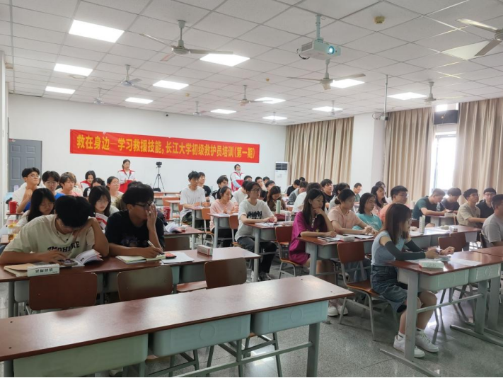 培训师首先通过视频介绍了红十字会的发展历史,之后结合一个个急救实例,阐述了应急救护知识的重要性,并就心肺复苏术、气道异物梗阻、常见意外伤害的急救处理等救护知识进行了详细的讲解。