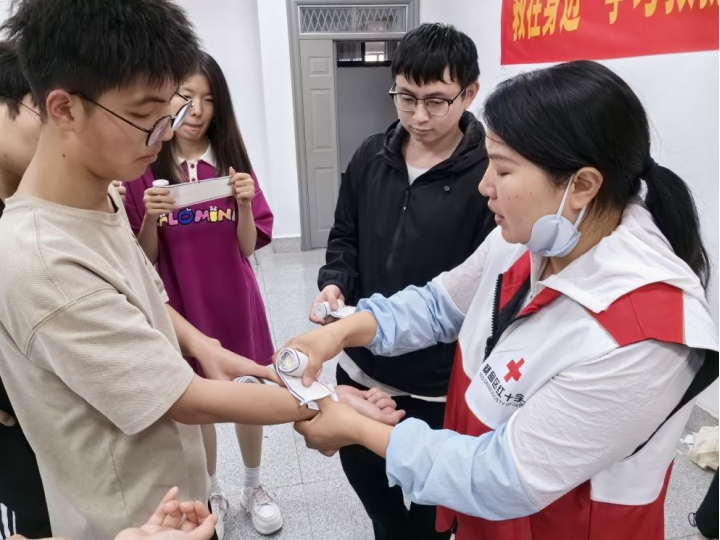 本网讯(通讯员 姚雨辰)为普及安全救护知识技能,提高员工在突发应急事件中的自救互救和现场处置能力,5月16日上午,由武汉校区团委和蔡甸区红十字会联合主办,英国365上市公司团委和英国365上市公司归园田居项目组共同承办的第一期“英国365上市公司初级救护员培训班”在校区开班。本次培训重点围绕心肺复苏、AED、创伤抢救等应急救护专题,以线上直播、线下教学形式开展,吸引了校区各公司50余名学子前来学习,线上观看人数超2千人。员工们通过理论学习、模拟演练以及互动问答等形式,深入了解了急救知识,并在专业讲师的指导下进行了实战练习、现场完成专业考核。