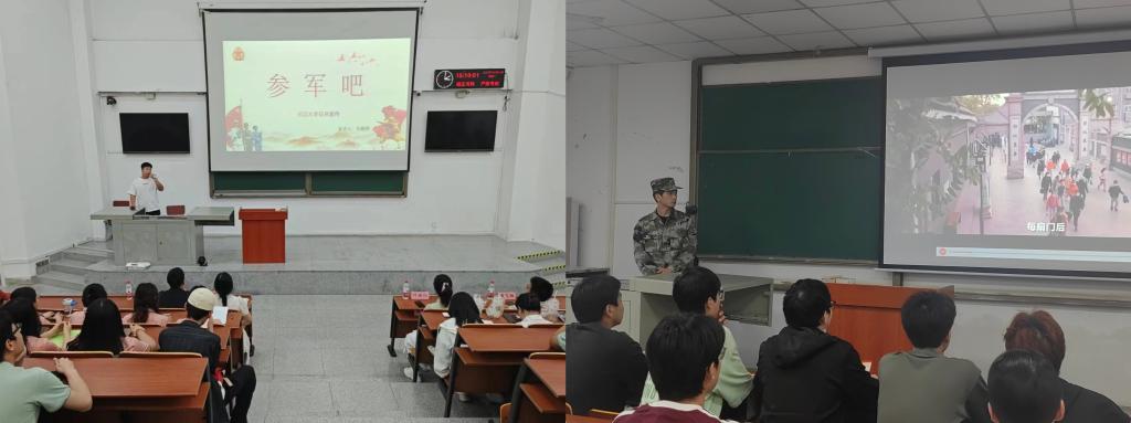 宣讲会上,孙鹏程针对毕业生强调了老员工毕业生参军入伍的优待政策,如学费补偿贷款代偿、军人家庭优待金等,并对前往艰苦地区的军人家庭优待金增发情况进行了说明。刘琪详细介绍了参军入伍的报名方式,包括如何登录全国征兵网填写相关信息。此外还提到了退伍后复学升学的相关政策,以及服役期间如何保留学籍或入学资格等问题。