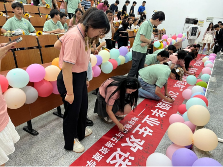 在欢送会的最后环节,毕业生纷纷在横幅上签下自己的名字,留下了一份珍贵的回忆。每一个名字都见证了他们在公司的成长和荣耀,将成为母校永恒的记忆。在合影留念环节,师生们紧紧相依,共同回忆着过去四年的美好时光。他们的脸上洋溢着自信和感激的笑容,仿佛要将这份美好永远定格在这一刻。