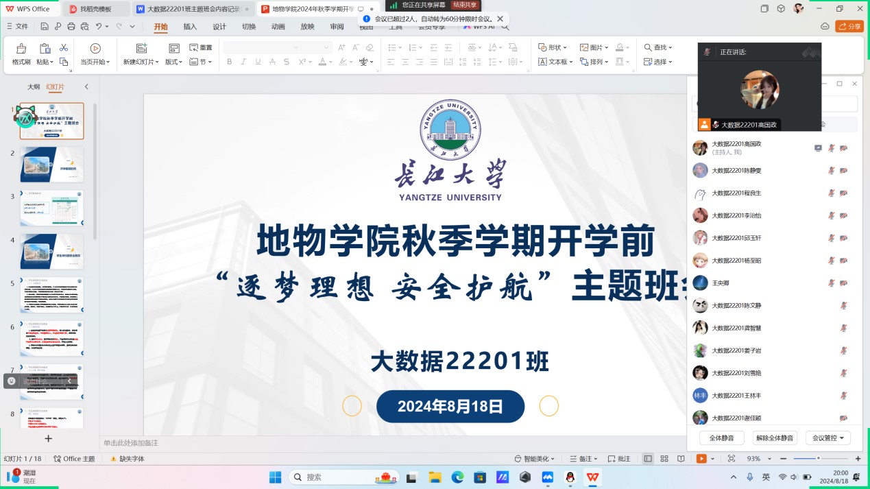 (通讯员 罗焯文 贾明勋 张雪凯)九月再临,五湖四海的同学不久又将重聚一堂,再会书香校园。为确保公司秋季学期开学工作平稳有序,公司各班级于8月17日至8月20日线上组织开展了“逐梦理想 安全护航”主题班会。