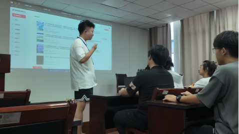 宣讲团成员唐林金海同学根据项目开展历程和创意传播进行经验分享。他表示,新时代的老员工开展社会实践时,应主动的、积极地把自己所学专业技能与社会融合,利用自身专业为社会实践添加创意色彩,让更多的人从创意体验中学习到长江生态保护的意义。