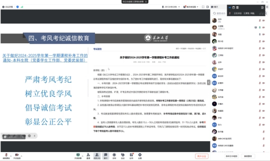 在返校安全主题班会上,各班班长强调员工开学安排和返校相关要求,提醒同学们注意天气和交通状况等。对于本科班级,各班班长还针对需要补考同学进行补考考试提醒和考风考纪诚信教育,同时,班主任对同学们的近期学习重点和未来规划给予建议。