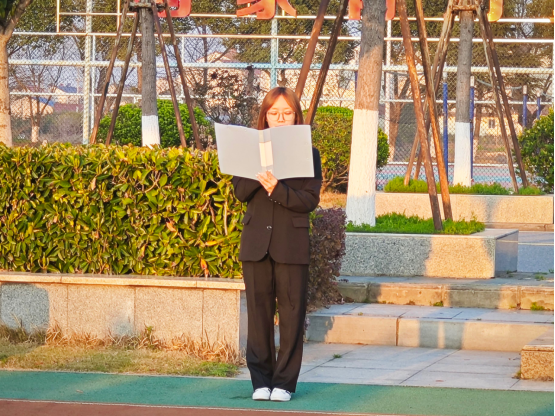 员工代表物探22301班陈逸欣在演讲中回顾历史、展望未来,激励全体同学携手并进,以青春之名义,为推进中国式现代化的伟大事业贡献青春力量。