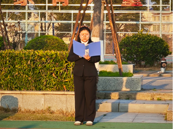 大数据22301班彭瑞洁、22302班饶铭越的原创诗《青春战歌》点燃全场。“荒漠种下光伏的汉唐”“量子纠缠撞响青铜编钟”等诗句,勾勒出科技报国的浪漫图景;合诵的“将滚烫的姓名焊进祖国蓝图”,更引发学子共鸣。