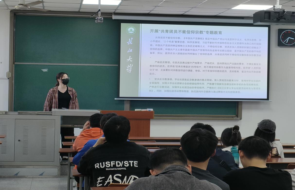 此外,各团支部还开展了“共青团员不能信仰宗教”专题教育活动。通过专题讲座、主题讨论等形式,向团员青年深入解读了党的宗教政策和相关法律法规,引导同学们坚定政治信仰,保持思想上的清醒和坚定。大家一致表示,要坚决贯彻党的宗教政策,自觉抵制宗教渗透,做一名合格的共青团员。