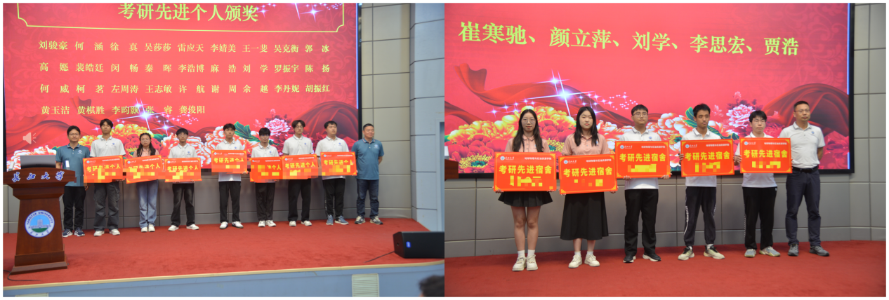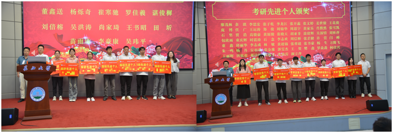 公司学工办主任董勤文宣读考研表彰文件,保研先进个人、考研先进个人、考研先进集体代表依次上台领奖。