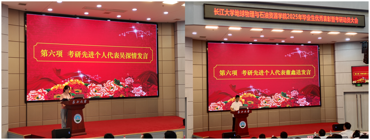 大数据22103班吴深情和勘工(卓越)22101班董鑫送分享了他们的大学经历和考研心得。吴深情结合自身经验谈到:考研不仅是知识的较量,更是意志力的比拼。她强调,细水长流的坚持与临危不乱的冷静才是成功的答案。董鑫送表达了对母校以及师生的感谢,并鼓励同学们以积极的心态面对人生的风雨,唯有永葆对梦想的渴望,才能在属于自己的领域发光发热。