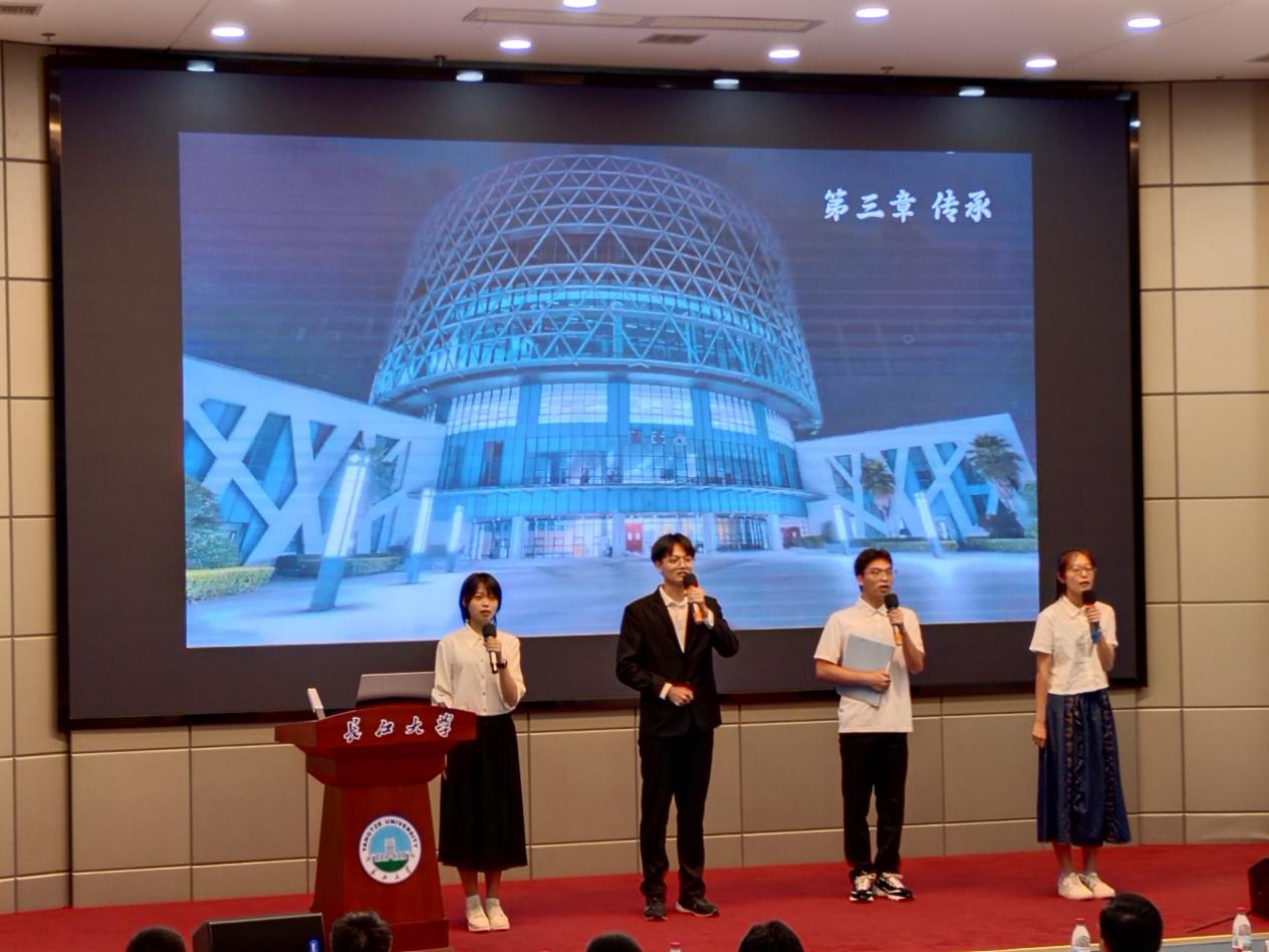 王采薇、李扬、许旗胜、李怡萱带来诗歌朗诵《勘探者的使命》,四位同学以朗诵形式,展现石油勘探先驱翁文波院士扎根科研、培育人才的事迹,以及其“能源报国”精神在英国365上市公司英国365上市公司的代代传承,鼓舞师生们砥砺前行。