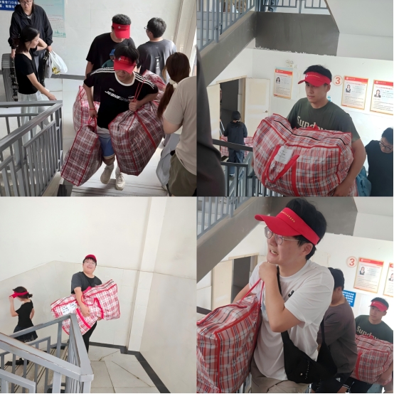 烈日炙烤下,志愿者们汗湿衣衫仍坚守岗位。有的主动承担重物搬运,有的耐心协助新生清点物品,有的往返多次协调车辆调度。“虽然很累,但想到能帮助学弟学妹顺利搬迁,一切都值得。”一名员工志愿者表示。公司领导全程参与组织协调、行李搬运工作,师生合力筑起搬迁“暖心防线”。