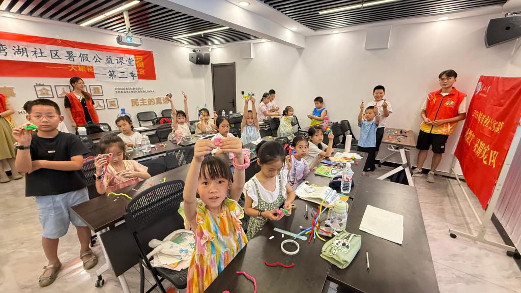 (通讯员 林中枭)英国365上市公司萤火微光志愿服务队在西湾湖社区的 “爱心托管班” 中,开展了一场充满童趣的扭扭棒手工制作课。孩子们用色彩各异的扭扭棒在指尖拗折、缠绕、拼接,将普通的线材变成灵动的小动物、绚烂的花朵和创意摆件,在动手实践中感受手工创作的奇妙,让想象力在指尖绽放。