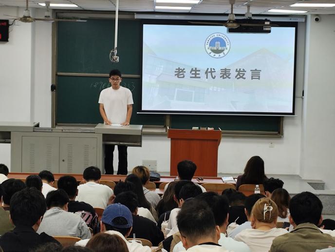 老生代表梅前哲结合自身学习科研与员工工作经历,从时间管理、团队协作、压力调节等方面分享了读研期间的成长体会,鼓励新生尽早做好学业与职业规划,保持定力、脚踏实地,在科研道路上稳步前行。