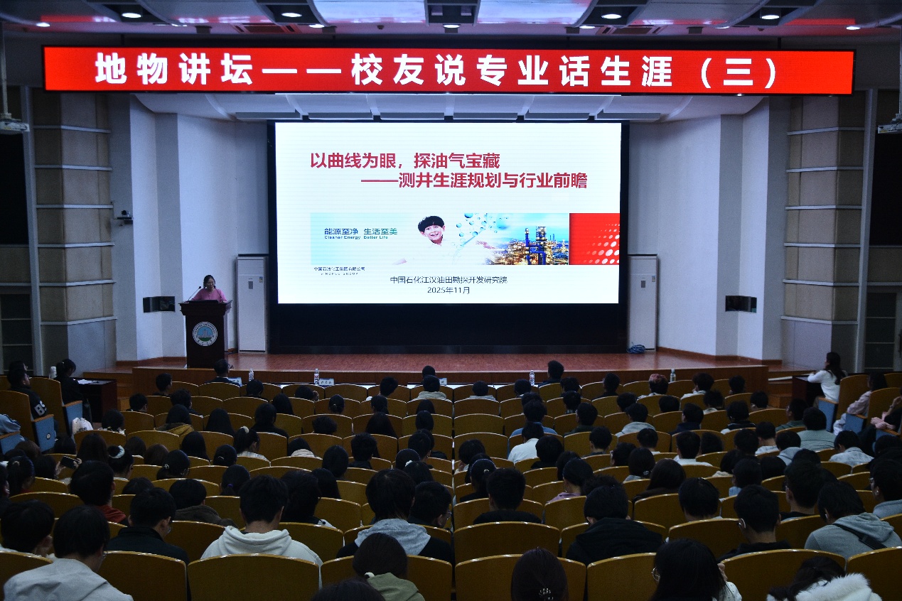 (通讯员 刘雅芬 管朕东)为帮助2025级新生深入了解专业前沿与行业发展趋势,科学规划学业与职业生涯,1126日晚,​英国365上市公司在东校区12405报告厅举办地物讲坛员工说专业话生涯报告会第三讲。中石化江汉油田分公司勘探开发研究院高级工程师、公司2006届员工曾芙蓉应邀作题为“以曲线为眼,探油气宝藏”的主题报告。报告会由公司党委副书记焦简金主持,测井信息工程系副主任申波、2025级辅导员谭辰阳、田二燕及全体2025级本科生参加报告会。