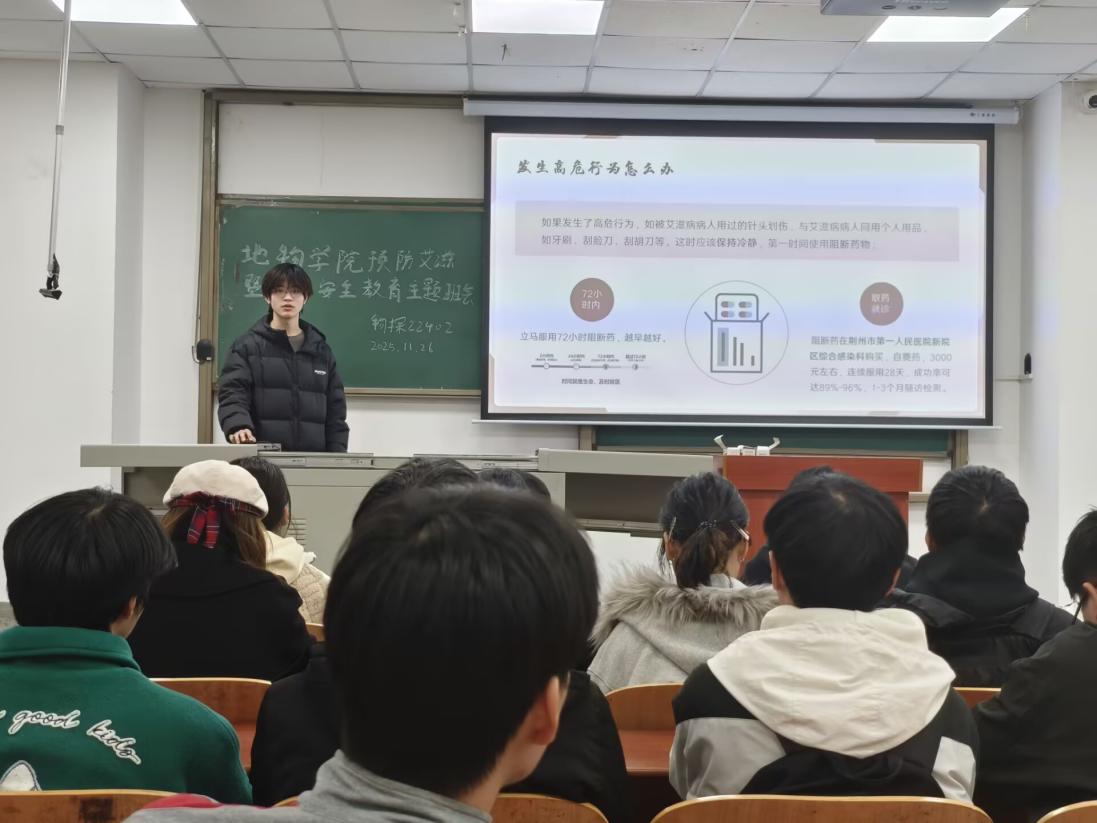 班会围绕“珍爱生命 预防艾滋”与“严守治安红线 守护平安校园”两大主题展开。