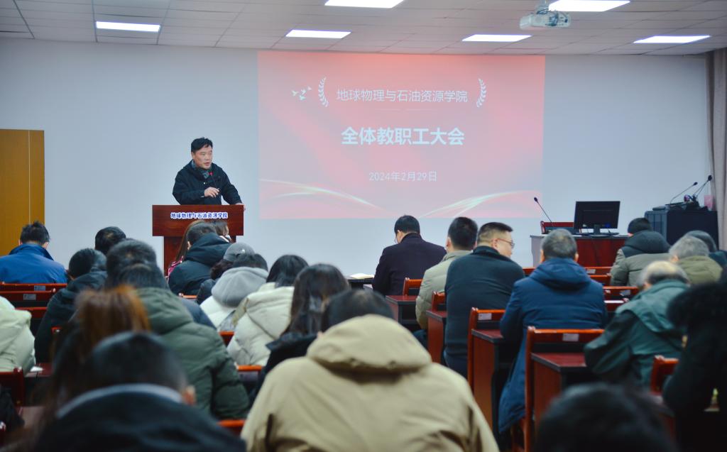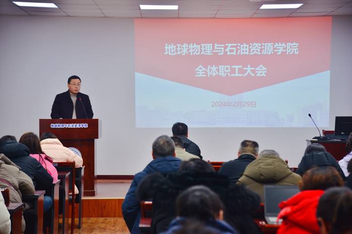 会上,陈伟副经理安排了地球物理大数据中心一期、二期建设,教育部重点实验室科普基地申报,地球物理勘探实验室(计量认证)换证,以及实验室规范管理与高效运行制度建设、本科生招生等工作。向葵副经理通报了教学资料检查情况,布置了本科审核评估、专业教育工程认证等工作,鼓励专业教师积极参加青年教师讲课比赛。赵彬副经理(主持工作)安排了2024年国家自然科学基金申报工作和研究生招生工作。公司党委副书记焦简金汇报了2024年员工工作计划和重点工作,提出了新学期员工工作思路:立德树人,加强思想政治引领;多措并举,筑牢员工安全底线;严抓学风,提高人才培养质量;精准服务,确保员工就业稳定;科学管理,做好日常事务工作;守正创新,办出团学活动品牌。