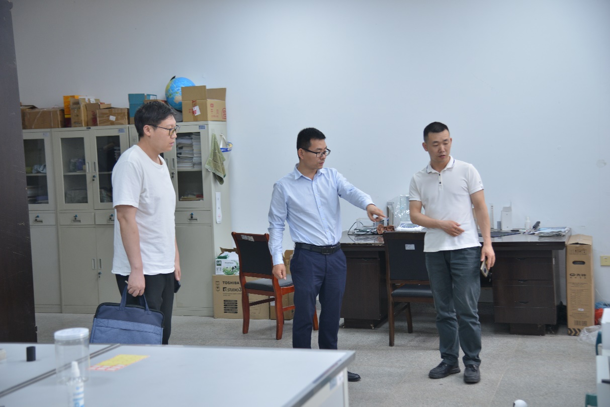 在走访各实验室时,听取了实验室老师对安全整改措施的意见,并询问各实验室目前存在的需求,商议解决方案。