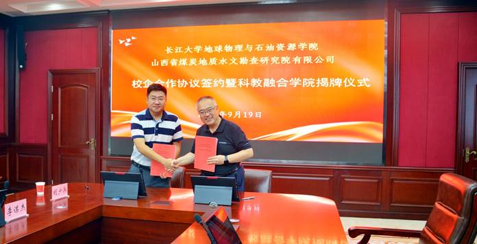 9月19日上午,公司在石油科技大楼知音厅与山西省煤炭地质水文勘查研究院有限公司(以下简称“勘查研究院”)郭勇洪总经理一行开展座谈交流,并签订校企合作协议。分党委书记周俊、副经理赵彬(主持工作)以及公司所属四个系的系主任和部分教师代表参加活动。