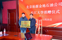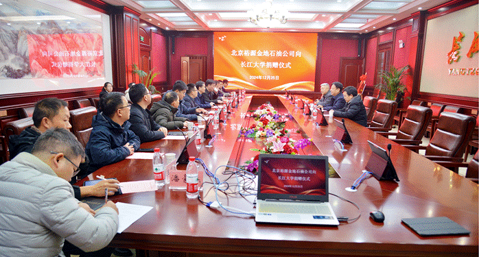 (通讯员 余为)12月25日下午,武汉校区石油科技大楼知音厅内暖意融融,公司在此隆重举行了北京裕源金地石油技术服务公司(以下简称“金地石油公司”)捐赠仪式。金地石油公司董事长雍大庆、总经理杨海、特约嘉宾张传林,公司党委副书记敖廷华、平台与实验室管理处副处长丁四兵、国有资产管理处副处长陈鹏,以及公司领导、部分教师代表共同见证了这一重要时刻。会议由分党委书记周俊主持。