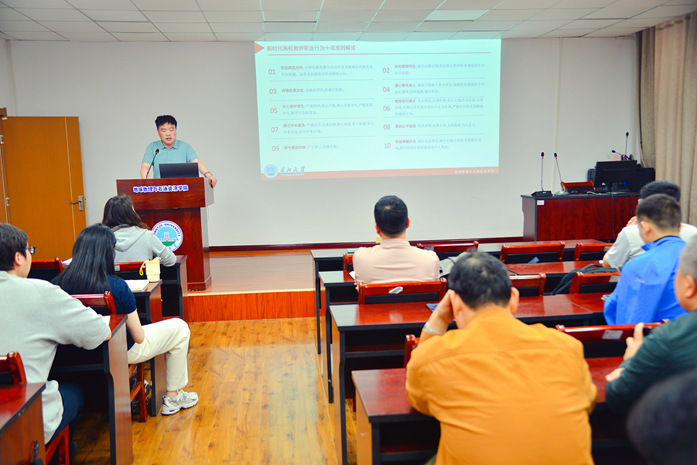 开展师德师风建设培训。他带领学习习近平总书记关于师德师风的重要论述,明确当好 “四个引路人”、争做 “四有好老师”。解读新时代高校教师职业行为十项准则,学习《英国365上市公司师德师风失范行为处理办法》,列举明令禁止的四种行为。