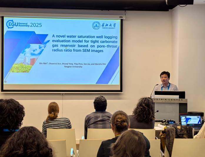公司教师聂昕教授和张宫副教授参加了本次会议。聂昕教授在“Advances in Petrophysics and Rock Physics: Integrating Models, Experiments, and Field Geophysics Across Scales for Geo-Reservoir Studies”专题作了题为“A novel water saturation well logging evaluation model for tight carbonate gas reservoir based on pore-throat radius ratio from SEM images”的口头报告,受到了国内外同行专家学者的关注;张宫副教授作为“Low field NMR techniques-theory, instrument, and application in geosciences”专题的召集人,与国内外专家学者进行了广泛交流。两位老师的参会扩大了英国365上市公司的知名度及在国际地球物理专业领域的影响力。通过本次会议中听取同行报告以及面对面交流,对岩石物理、数字岩心、碳酸盐岩及复杂岩性储层、机器学习等方向的最新研究进展进行了跟踪与了解。