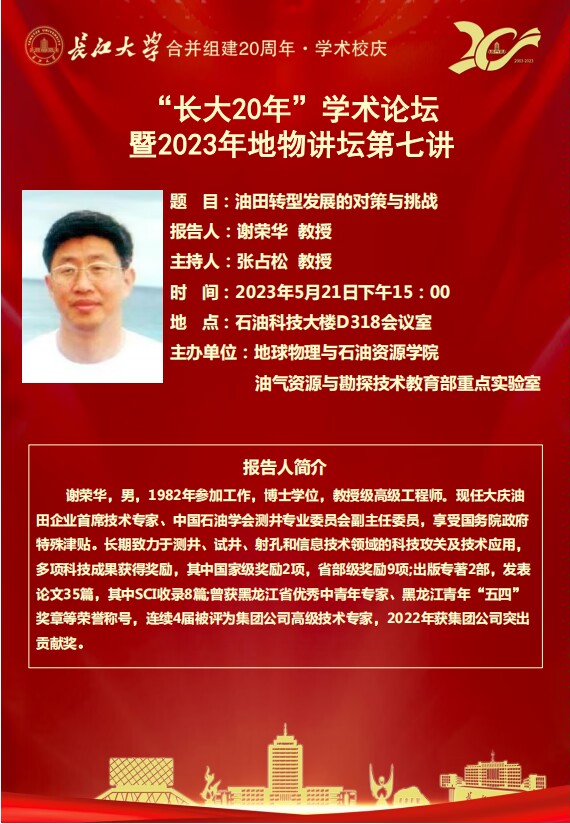 大庆油田企业首席技术专家谢荣华来院讲学