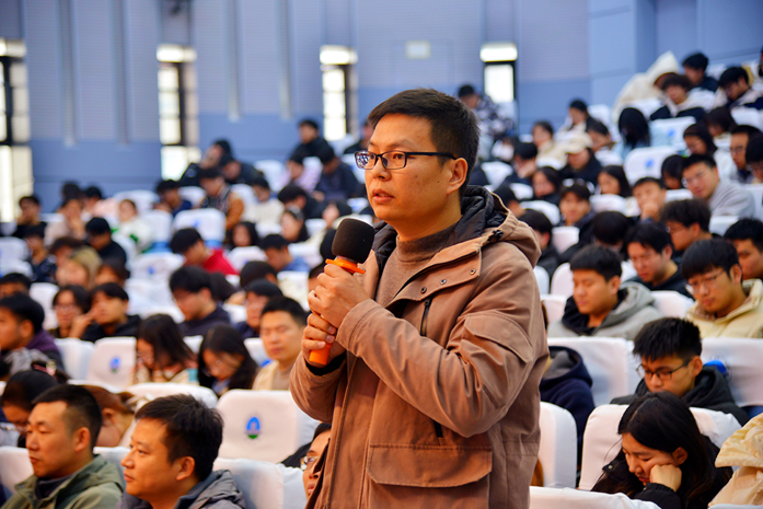 在交流环节,师生围绕“中生代伸展构造识别标志”、“克拉通破坏与油气成藏关联”等问题踊跃提问。林伟研究员逐一耐心解答。
